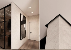 Плинтус изготовлен из алюминия, выкрашен в черный цвет. Встраивается в стену. Можно устанавливать после отделки стен.