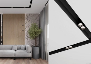 Профиль изготовлен из алюминия. В комплекте со вставкой-рассеивателем из поликарбоната используется для формирования световой линий на потолке или стене. Световые линии используются в качестве основного или декоративного освещения